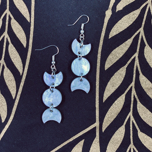 White Lilac Sparkle Triple Moon Dangle Earrings