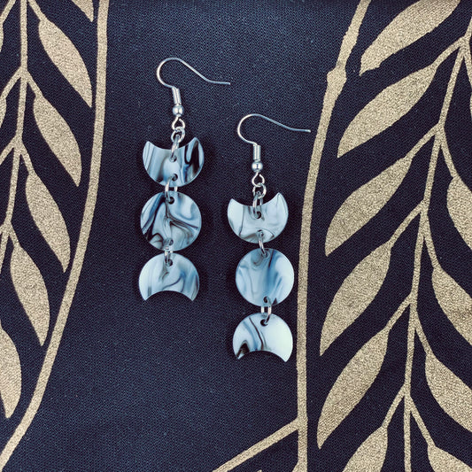 Sludge Drip Triple Moon Dangle Earrings
