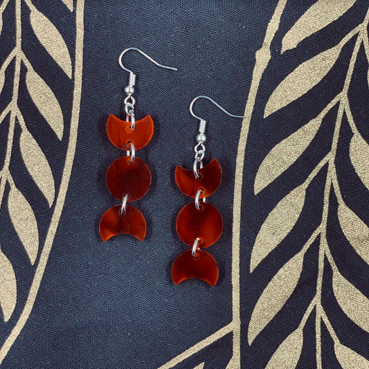 Red Smoke Triple Moon Dangle Earrings