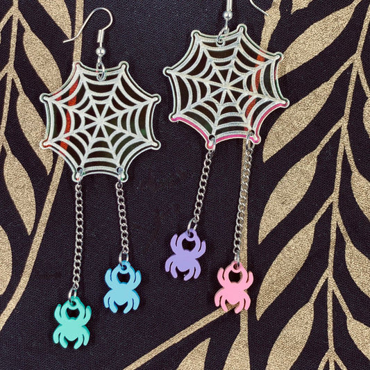 Iridescent Spiderweb Dangle Earrings