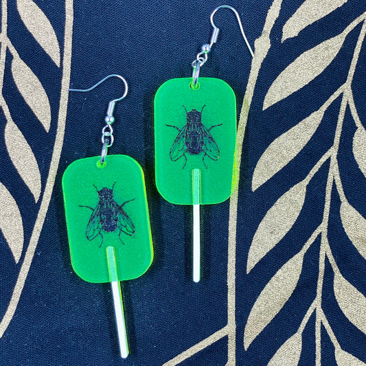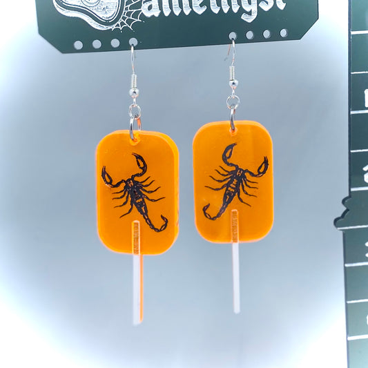 Neon Orangey Pink Spider Lollipop Bug Earrings